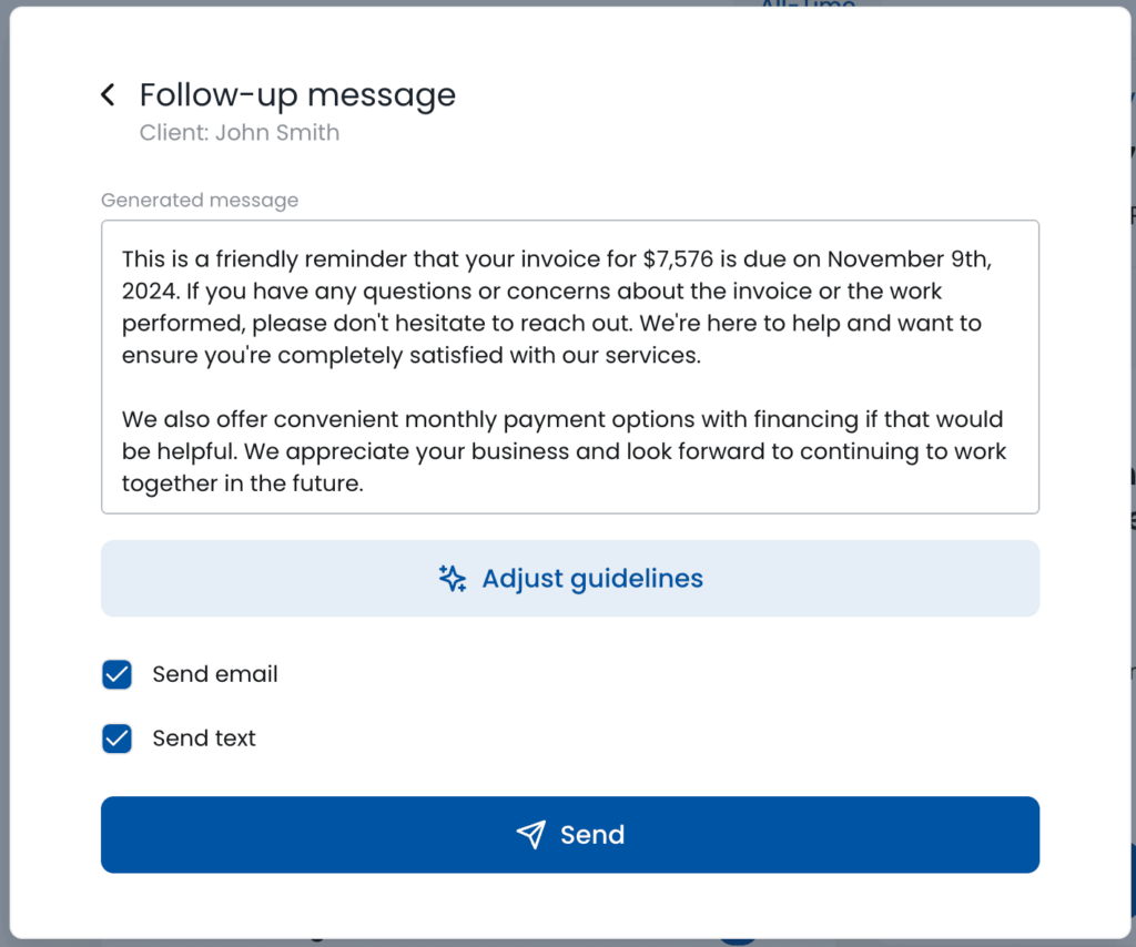 Send a Quote or Invoice. When it is due use AI to create follow-up message.